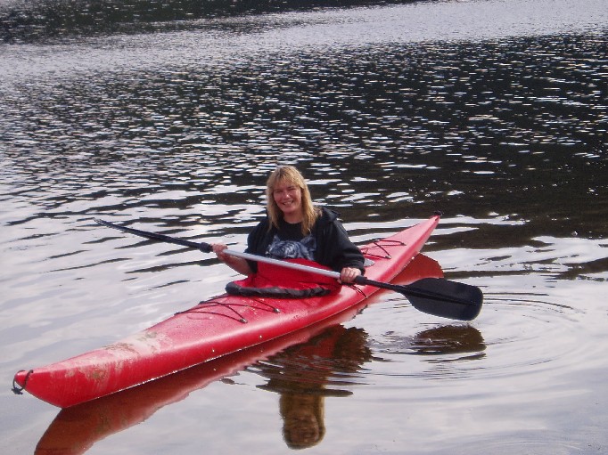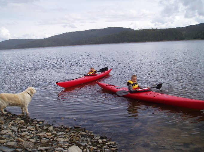 Gøran prøver å padle kajakk for første gang - d gikk veldig bra! Runar er